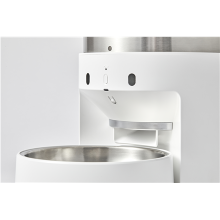Bowl capacity 0.74 L. The 3 built-in lock systems keep food fresh. Sealing silicon on the lid and at the door and the desiccant box keep the food dry. Built-in weight sensor measures accurately. Auto rotating bowl prevents over loaded food and food stacking. It also avoids food spill. Every grain falls evenly and decently.